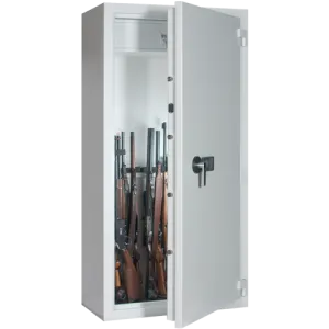 Waffentresor Baureihe INZELL N Finden Sie eine große Auswahl von Tresoren in unseremTRESORFINDER Waffenschrank der Modellreihe INZELL N, ein stimmiges Konzept zur sicheren Lagerung von Langwaffen - bestätigt durch die definierte Einbruchprüfung nach VdS-Norm. Diese Serie bietet Schränke mit 6, 13, 15 oder 20 Schaumstoffwaffenhaltern. Eine Putzstockhaltung auf der Türinnenseite ist bei allen Waffenschränke serienmäßig vorhanden. Außerdem gehört ein Innentresor mit Zylinderschloss zur Grundausstattung (außer beim Modell INZELL N 6). Er ist zur Aufbewahrung von Munition bestens geeignet. Im Modell INZELL N 0 ist der Innentresor 200 mm hoch. Bei den Modellen INZELL N 1 bis 4 bietet er sogar Platz für DIN A 4 Ordner. Ein Waffenschrank dieser Modellreihe überzeugt durch seine stabile Bauart und die sorgfältige Verarbeitung. Die mehrwandige Konstruktion schützt gegen Angriffe mit mechanischen und thermisch wirkenden Werkzeugen (30/30 RU). Für die Versicherungseinstufung ist eine fachgerechte Bodenverankerung (gem. beigefügter Anleitung) erforderlich. Der Korpus ist bereits dafür vorbereitet. Die 105 mm starke Tresortür verfügt über ein Rundbolzenriegelwerk und ein Doppelbartsicherheitsschloss der Klasse 1 (inkl. 2 Schlüsseln). Alternative Kombinationsschlösser gibt es gegen Aufpreis. Bei den eintürigen Schränken liegt der Türanschlag DIN rechts. Die Modelle 3 und 4 sind doppeltürig. Individuelle Möglichkeiten der Innenausstattung ergeben sich durch diverses Zubehör (gegen Aufpreis). Hersteller Hossbach Metallbau-Gerätebau GmbH Sicherheitsstufe Sicherheitsstufe VdS Klasse N/0 nach EN 1143-1 Grad 0 Brandschutzklasse Kein zertifizierter Brandschutz / Feuerschutz RAL Farbe RAL 7035, lichtgrau RAL 7016, anthrazitgrau