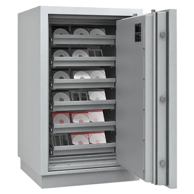 Datensicherungstresor KOPENHAGEN 60 Datensicherungstresor KOPENHAGEN 60 - Bild 2 Datensicherungstresor KOPENHAGEN 60 - Bild 3 Datensicherungstresor KOPENHAGEN 60 - Bild 4 Datensicherungstresor KOPENHAGEN 60 - Bild 5 Zur Abbildung kommt Datensicherungstresor KOPENHAGEN 60 Auf dem Foto können teilweise Sonderausstattungen gegen Mehrpreis mit abgebildet sein. Datensicherungstresor KOPENHAGEN 60 Sicherheitsstufen: Klasse 1 nach EN 1143-1 Grad 1 Brandschutzklassen: Feuerschutz / Brandschutz S 120 DIS nach EN 1047-1, 2 h Feuerschutz / Brandschutz für Datenträger Außenmaße (Höhe x Breite x Tiefe in mm): 1.143 x 714 x 662 (704 mm mit Griff) Innenmaße (Höhe x Breite x Tiefe in mm): 887 x 493 x 388 Anzahl Fachböden inkl.: 2 Rauminhalt (in Liter): 169,5 l Gewicht: 433,0 kg Grundpreis:2.763,98 € inkl. MwSt. Farbe RAL 7035, lichtgrau Elektronikschloss Combi B 90 mit Notschlüssel von Dorma-Kaba Elektronikschloss Combi B 90, mit mechanischer Revision, mit einem Master- und 90 Benutzercodes, durch PC-Software und Kabel (Sonderzubehör) via Laptop auslesbar, mit Notschlüssel und Aluminiumbeschlag, 70 mm vorstehend, statt des serienmäßigen Doppelbartschlosses. Elektronikschloss Modell Stellar Basic, 12 mm vorstehend, Elektronikschloss Modell Stellar Basic, ohne Revision, mit 1 Mastercode, umstellbar, 12 mm vorstehend, statt des serienmäßigen Doppelbartschlosses, Stromversorgung durch 9-V-Blockbatterie. Mechanisches Zahlenkombinationsschloss La Gard Mechanisches Zahlenkombinationsschloss La Gard 3390, 12 mm vorstehend, statt des serienmäßigen Doppelbartsicherheitsschlosses. Elektronikschloss Modell Stellar Business, 12 mm vorstehend, Elektronikschloss Modell Stellar Business, mit 1 Master- und 9 Benutzercodes, ohne Revision, mit Ereignisspeicher für bis zu 32 Ereignisse, durch LED's auslesbar, 12 mm vorstehend, statt des serienmäßigen Doppelbartschlosses, Stromversorgung durch 9 V Blockbatterie. Automatisches Verschließen, des Elektronikschlosses Stellar Business bei Verriegelung der Tresortür. Nicht möglich bei Stellar Basic. Elektronikschloss Primor 3010 Lev 15 Elektronisches Zahlenkombinationsschloss mit 1 Master- und 9 Benutzercodes, mit verdeckter Notöffnungsmöglichkeit durch Doppelbartschloss mit 2 Schlüsseln, mit Tastatur FS, 49 mm vorstehend, statt des serienmäßigen Doppelbartschlosses, Hergestellt in Deutschland. Elektronikschloss Primor 3010 Lev 5 Elektronisches Zahlenkombinationsschloss mit 1 Master- und 1 Benutzercode, mit verdeckter Notöffnungsmöglichkeit durch Doppelbartschloss mit 2 Schlüsseln, mit Tastatur FS, 49 mm vorstehend, statt des serienmäßigen Doppelbartschlosses, Hergestellt in Deutschland. Schlossvarianten - Auswählen / Zurücksetzen -Elektronikschloss Combi B 90 mit Notschlüssel von Dorma-Kaba zum Preis von 383,28 € Elektronikschloss Modell Stellar Basic, 12 mm vorstehend, zum Preis von 135,18 € Elektronikschloss Modell Stellar Business, 12 mm vorstehend, zum Preis von 157,81 € Elektronikschloss Primor 3010 Lev 15 zum Preis von 387,68 € Elektronikschloss Primor 3010 Lev 5 zum Preis von 357,94 € Mechanisches Zahlenkombinationsschloss La Gard zum Preis von 142,00 € 12345678910 Hängegriff VESTA für Combi B 90 zum Preis von 47,01 € Automatisches Verschließen, zum Preis von 115,20 € Automatisches Verschließen, zum Preis von 115,20 € Hängeregistratur bis zu 700 mm Breite Hängeregistratur auf Teleskopschienen für DIN A 4 Hängemappen, für Tresore bis 700 mm Innenbreite. Fachboden für Hängeregistratur Fachboden vorbereitet für eine Hängeregistratur, links und rechts einzuhängen, für 2-türige Tresore mit Mitteltrennwand und für eintürige Tresore. Schublade auf Teleskopschienen für Datenträger Schublade, voll ausziehbar, mit steckbaren Unterteilungen. Inneneinrichtung - Auswählen / Zurücksetzen -Fachboden für Hängeregistratur zum Preis von 61,68 € Hängeregistratur bis zu 700 mm Breite zum Preis von 218,03 € Schublade auf Teleskopschienen für Datenträger zum Preis von 187,57 € 12345678910 Fachboden für Hängeregistratur zum Preis von 61,68 € Hängeregistratur bis zu 700 mm Breite Hängeregistratur auf Teleskopschienen für DIN A 4 Hängemappen, für Tresore bis 700 mm Innenbreite. Fachboden für Hängeregistratur Fachboden vorbereitet für eine Hängeregistratur, links und rechts einzuhängen, für 2-türige Tresore mit Mitteltrennwand und für eintürige Tresore. Schublade auf Teleskopschienen für Datenträger Schublade, voll ausziehbar, mit steckbaren Unterteilungen. Weitere Inneneinrichtung - Auswählen / Zurücksetzen -Fachboden für Hängeregistratur zum Preis von 61,68 € Hängeregistratur bis zu 700 mm Breite zum Preis von 218,03 € Schublade auf Teleskopschienen für Datenträger zum Preis von 187,57 € 12345678910 Fachboden für Hängeregistratur zum Preis von 61,68 € Hängeregistratur bis zu 700 mm Breite Hängeregistratur auf Teleskopschienen für DIN A 4 Hängemappen, für Tresore bis 700 mm Innenbreite. Fachboden für Hängeregistratur Fachboden vorbereitet für eine Hängeregistratur, links und rechts einzuhängen, für 2-türige Tresore mit Mitteltrennwand und für eintürige Tresore. Schublade auf Teleskopschienen für Datenträger Schublade, voll ausziehbar, mit steckbaren Unterteilungen. Weitere Inneneinrichtung - Auswählen / Zurücksetzen -Fachboden für Hängeregistratur zum Preis von 61,68 € Hängeregistratur bis zu 700 mm Breite zum Preis von 218,03 € Schublade auf Teleskopschienen für Datenträger zum Preis von 187,57 € 12345678910 Fachboden für Hängeregistratur zum Preis von 61,68 € Innentresor, 150 mm hoch, mit Zylinderschloss und 2 Schlüsseln. Doppelbartschloss (inkl. 2 Schlüssel) für Innentresor Doppelbartschloss (inkl. 2 Schlüssel) für Innentresor anstelle des serienmäßigen Zylinderschlosses. Innentresor - Auswählen / Zurücksetzen -Innentresor, 150 mm hoch, zum Preis von 106,04 € 12345678910 Doppelbartschloss (inkl. 2 Schlüssel) für Innentresor