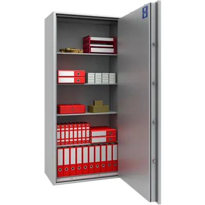 Dokumententresor KÖLN SUPER 05 Dokumententresor KÖLN SUPER 05 - Bild 2 Zur Abbildung kommt Dokumententresor KÖLN SUPER 05 Auf dem Foto können teilweise Sonderausstattungen gegen Mehrpreis mit abgebildet sein. Dokumententresor KÖLN SUPER 05 Sicherheitsstufen: Klasse N/0 nach EN 1143-1 Grad 0 Brandschutzklassen: Feuerschutz / Brandschutz S 60 P nach EN 1047-1, 1 h Feuerschutz für Dokumente Außenmaße (Höhe x Breite x Tiefe in mm): 1.884 x 886 x 445 (487 mm mit Griff) Innenmaße (Höhe x Breite x Tiefe in mm): 1.783 x 774 x 313 Platz für DIN A4 Ordner: 50 Anzahl Fachböden inkl.: 4 Rauminhalt (in Liter): 432,0 l Gewicht: 545,0 kg Grundpreis:2.482,03 € inkl. MwSt. Farbe RAL 7035, lichtgrau Elektronikschloss Combi B 90 mit Notschlüssel von Dorma-Kaba Elektronikschloss Combi B 90, mit mechanischer Revision, mit einem Master- und 90 Benutzercodes, durch PC-Software und Kabel (Sonderzubehör) via Laptop auslesbar, mit Notschlüssel und Aluminiumbeschlag, 70 mm vorstehend, statt des serienmäßigen Doppelbartschlosses. Elektronikschloss Modell Stellar Basic, 12 mm vorstehend, Elektronikschloss Modell Stellar Basic, ohne Revision, mit 1 Mastercode, umstellbar, 12 mm vorstehend, statt des serienmäßigen Doppelbartschlosses, Stromversorgung durch 9-V-Blockbatterie. Mechanisches Zahlenkombinationsschloss La Gard Mechanisches Zahlenkombinationsschloss La Gard 3390, 12 mm vorstehend, statt des serienmäßigen Doppelbartsicherheitsschlosses. Elektronikschloss Modell Stellar Business, 12 mm vorstehend, Elektronikschloss Modell Stellar Business, mit 1 Master- und 9 Benutzercodes, ohne Revision, mit Ereignisspeicher für bis zu 32 Ereignisse, durch LED's auslesbar, 12 mm vorstehend, statt des serienmäßigen Doppelbartschlosses, Stromversorgung durch 9 V Blockbatterie. Aufpreis für mechanische Revision über Doppelbartschloss mit 2 Schlüsseln, Aufpreis für mechanische Revision über Doppelbartschloss mit 2 Schlüsseln für die folgenden Elektronikschlösser: Stellar Business und Stellar Basic. Automatisches Verschließen, des Elektronikschlosses Stellar Business bei Verriegelung der Tresortür. Nicht möglich bei Stellar Basic. Beschlag CS 1780 - perfekte Bedienung für Ihr Zahlenkombinationsschloss Beschlag CS 1780, 30 mm vorstehend, perfekte Bedienung für Ihr Zahlenkombinationsschloss. Elektronikschloss Primor 3010 Lev 15 Elektronisches Zahlenkombinationsschloss mit 1 Master- und 9 Benutzercodes, mit verdeckter Notöffnungsmöglichkeit durch Doppelbartschloss mit 2 Schlüsseln, mit Tastatur FS, 49 mm vorstehend, statt des serienmäßigen Doppelbartschlosses, Hergestellt in Deutschland. Elektronikschloss Primor 3010 Lev 5 Elektronisches Zahlenkombinationsschloss mit 1 Master- und 1 Benutzercode, mit verdeckter Notöffnungsmöglichkeit durch Doppelbartschloss mit 2 Schlüsseln, mit Tastatur FS, 49 mm vorstehend, statt des serienmäßigen Doppelbartschlosses, Hergestellt in Deutschland. Elektronikschloss TULOX 100, Flash 5, mit Notschlüssel, Elektronikschloss Tulox 100, Flash 5, mit 1 Master- und 8 Benutzercodes, mit Notöffnungsschloss und 1 Notschlüssel, Notschlüsselloch verdeckt, 35 mm vorstehend, Batteriebetrieb mit 4 Alkaline Mignon-Zellen (auch bezeichnet als Typ AA oder LR6), statt des serienmäßigen Doppelbartschlosses. Hergestellt in Deutschland. Schlossvarianten - Auswählen / Zurücksetzen -Elektronikschloss Combi B 90 mit Notschlüssel von Dorma-Kaba zum Preis von 383,28 € Elektronikschloss Modell Stellar Basic, 12 mm vorstehend, zum Preis von 135,18 € Elektronikschloss Modell Stellar Business, 12 mm vorstehend, zum Preis von 157,81 € Elektronikschloss Primor 3010 Lev 15 zum Preis von 387,68 € Elektronikschloss Primor 3010 Lev 5 zum Preis von 357,94 € Elektronikschloss TULOX 100, Flash 5, mit Notschlüssel, zum Preis von 319,72 € Mechanisches Zahlenkombinationsschloss La Gard zum Preis von 142,00 € 12345678910 Hängegriff VESTA für Combi B 90 zum Preis von 47,01 € Aufpreis für mechanische Revision über Doppelbartschloss mit 2 Schlüsseln, zum Preis von 50,49 € Automatisches Verschließen, zum Preis von 115,20 € Beschlag CS 1780 - perfekte Bedienung für Ihr Zahlenkombinationsschloss zum Preis von 46,89 € Aufpreis für mechanische Revision über Doppelbartschloss mit 2 Schlüsseln, zum Preis von 50,49 € Automatisches Verschließen, zum Preis von 115,20 € Fachboden (Tablar), klein Fachboden (Tablar), höhenverstellbar, auf voll ausziehbaren Teleskopschienen, für 2-türige Tresore mit Mitteltrennwand und 1-türige Tresore. Zusätzlicher Fachboden, mittel Zusätzlicher Fachboden, mit Bodenträgern, für Tresore zwischen 501 und 1000 mm Außenbreite. Hängeregistratur zwischen 701 und 900 mm Breite Hängeregistratur, auf Teleskopschienen, für DIN A 4 Hängemappen, für Tresore zwischen 701 und 900 mm Innenbreite. Inneneinrichtung - Auswählen / Zurücksetzen -Fachboden (Tablar), klein zum Preis von 218,73 € Hängeregistratur zwischen 701 und 900 mm Breite zum Preis von 237,75 € Zusätzlicher Fachboden, mittel zum Preis von 50,49 € 12345678910 Fachboden (Tablar), klein Fachboden (Tablar), höhenverstellbar, auf voll ausziehbaren Teleskopschienen, für 2-türige Tresore mit Mitteltrennwand und 1-türige Tresore. Zusätzlicher Fachboden, mittel Zusätzlicher Fachboden, mit Bodenträgern, für Tresore zwischen 501 und 1000 mm Außenbreite. Hängeregistratur zwischen 701 und 900 mm Breite Hängeregistratur, auf Teleskopschienen, für DIN A 4 Hängemappen, für Tresore zwischen 701 und 900 mm Innenbreite. Weitere Inneneinrichtung - Auswählen / Zurücksetzen -Fachboden (Tablar), klein zum Preis von 218,73 € Hängeregistratur zwischen 701 und 900 mm Breite zum Preis von 237,75 € Zusätzlicher Fachboden, mittel zum Preis von 50,49 € 12345678910 Fachboden (Tablar), klein Fachboden (Tablar), höhenverstellbar, auf voll ausziehbaren Teleskopschienen, für 2-türige Tresore mit Mitteltrennwand und 1-türige Tresore. Zusätzlicher Fachboden, mittel Z