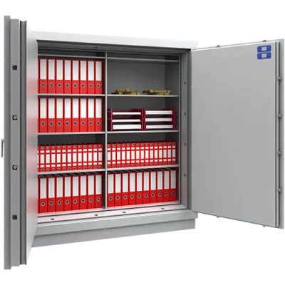 Dokumententresor PRAG 07 Dokumententresor PRAG 07 - Bild 2 Zur Abbildung kommt Dokumententresor PRAG 07 Auf dem Foto können teilweise Sonderausstattungen gegen Mehrpreis mit abgebildet sein. Dokumententresor PRAG 07 Sicherheitsstufen: Klasse 2 nach EN 1143-1 Grad 2 Brandschutzklassen: Feuerschutz / Brandschutz S 120 P nach EN 1047-1, 2 h Feuerschutz für Dokumente Außenmaße (Höhe x Breite x Tiefe in mm): 1.821 x 1.775 x 573 (615 mm mit Griff) Innenmaße (Höhe x Breite x Tiefe in mm): 1.507 x 1.591 x 341 Platz für DIN A4 Ordner: 84 Anzahl Fachböden inkl.: 6 Rauminhalt (in Liter): 817,5 l Gewicht: 1.452,0 kg Grundpreis:5.334,29 € inkl. MwSt. Farbe RAL 7035, lichtgrau Elektronikschloss Combi B 90 mit Notschlüssel von Dorma-Kaba Elektronikschloss Combi B 90, mit mechanischer Revision, mit einem Master- und 90 Benutzercodes, durch PC-Software und Kabel (Sonderzubehör) via Laptop auslesbar, mit Notschlüssel und Aluminiumbeschlag, 70 mm vorstehend, statt des serienmäßigen Doppelbartschlosses. Elektronikschloss Modell Stellar Basic, 12 mm vorstehend, Elektronikschloss Modell Stellar Basic, ohne Revision, mit 1 Mastercode, umstellbar, 12 mm vorstehend, statt des serienmäßigen Doppelbartschlosses, Stromversorgung durch 9-V-Blockbatterie. Mechanisches Zahlenkombinationsschloss La Gard Mechanisches Zahlenkombinationsschloss La Gard 3390, 12 mm vorstehend, statt des serienmäßigen Doppelbartsicherheitsschlosses. Elektronikschloss Modell Stellar Business, 12 mm vorstehend, Elektronikschloss Modell Stellar Business, mit 1 Master- und 9 Benutzercodes, ohne Revision, mit Ereignisspeicher für bis zu 32 Ereignisse, durch LED's auslesbar, 12 mm vorstehend, statt des serienmäßigen Doppelbartschlosses, Stromversorgung durch 9 V Blockbatterie. Aufpreis für mechanische Revision über Doppelbartschloss mit 2 Schlüsseln, Aufpreis für mechanische Revision über Doppelbartschloss mit 2 Schlüsseln für die folgenden Elektronikschlösser: Stellar Business und Stellar Basic. Automatisches Verschließen, des Elektronikschlosses Stellar Business bei Verriegelung der Tresortür. Nicht möglich bei Stellar Basic. Beschlag CS 1780 - perfekte Bedienung für Ihr Zahlenkombinationsschloss Beschlag CS 1780, 30 mm vorstehend, perfekte Bedienung für Ihr Zahlenkombinationsschloss. Elektronikschloss Primor 3010 Lev 15 Elektronisches Zahlenkombinationsschloss mit 1 Master- und 9 Benutzercodes, mit verdeckter Notöffnungsmöglichkeit durch Doppelbartschloss mit 2 Schlüsseln, mit Tastatur FS, 49 mm vorstehend, statt des serienmäßigen Doppelbartschlosses, Hergestellt in Deutschland. Elektronikschloss Primor 3010 Lev 5 Elektronisches Zahlenkombinationsschloss mit 1 Master- und 1 Benutzercode, mit verdeckter Notöffnungsmöglichkeit durch Doppelbartschloss mit 2 Schlüsseln, mit Tastatur FS, 49 mm vorstehend, statt des serienmäßigen Doppelbartschlosses, Hergestellt in Deutschland. Schlossvarianten - Auswählen / Zurücksetzen -Elektronikschloss Combi B 90 mit Notschlüssel von Dorma-Kaba zum Preis von 383,28 € Elektronikschloss Modell Stellar Basic, 12 mm vorstehend, zum Preis von 135,18 € Elektronikschloss Modell Stellar Business, 12 mm vorstehend, zum Preis von 157,81 € Elektronikschloss Primor 3010 Lev 15 zum Preis von 387,68 € Elektronikschloss Primor 3010 Lev 5 zum Preis von 357,94 € Mechanisches Zahlenkombinationsschloss La Gard zum Preis von 142,00 € 12345678910 Hängegriff VESTA für Combi B 90 zum Preis von 47,01 € Aufpreis für mechanische Revision über Doppelbartschloss mit 2 Schlüsseln, zum Preis von 50,49 € Automatisches Verschließen, zum Preis von 115,20 € Beschlag CS 1780 - perfekte Bedienung für Ihr Zahlenkombinationsschloss zum Preis von 46,89 € Aufpreis für mechanische Revision über Doppelbartschloss mit 2 Schlüsseln, zum Preis von 50,49 € Automatisches Verschließen, zum Preis von 115,20 € Fachboden (Tablar), klein Fachboden (Tablar), höhenverstellbar, auf voll ausziehbaren Teleskopschienen, für 2-türige Tresore mit Mitteltrennwand und 1-türige Tresore. Hängeregistratur bis zu 700 mm Breite Hängeregistratur auf Teleskopschienen für DIN A 4 Hängemappen, für Tresore bis 700 mm Innenbreite. Fachboden für Hängeregistratur Fachboden vorbereitet für eine Hängeregistratur, links und rechts einzuhängen, für 2-türige Tresore mit Mitteltrennwand und für eintürige Tresore. Zusätzlicher Fachboden, mittel Zusätzlicher Fachboden, mit Bodenträgern, für Tresore zwischen 501 und 1000 mm Außenbreite. Schublade auf Teleskopschienen, voll ausziehbar Schublade, auf Teleskopschienen, voll ausziehbar, individuell einzurichten, Höhe: Front 100 mm, Seiten- u. Rückwand 80 mm, für 1-türige Tresore und 2-türige Tresore mit Mitteltrennwand. Inneneinrichtung - Auswählen / Zurücksetzen -Fachboden (Tablar), klein zum Preis von 218,73 € Fachboden für Hängeregistratur zum Preis von 61,68 € Hängeregistratur bis zu 700 mm Breite zum Preis von 218,03 € Schublade auf Teleskopschienen, voll ausziehbar zum Preis von 218,03 € Zusätzlicher Fachboden, mittel zum Preis von 50,49 € 12345678910 Fachboden für Hängeregistratur zum Preis von 61,68 € Fachboden (Tablar), klein Fachboden (Tablar), höhenverstellbar, auf voll ausziehbaren Teleskopschienen, für 2-türige Tresore mit Mitteltrennwand und 1-türige Tresore. Hängeregistratur bis zu 700 mm Breite Hängeregistratur auf Teleskopschienen für DIN A 4 Hängemappen, für Tresore bis 700 mm Innenbreite. Fachboden für Hängeregistratur Fachboden vorbereitet für eine Hängeregistratur, links und rechts einzuhängen, für 2-türige Tresore mit Mitteltrennwand und für eintürige Tresore. Zusätzlicher Fachboden, mittel Zusätzlicher Fachboden, mit Bodenträgern, für Tresore zwischen 501 und 1000 mm Außenbreite. Schublade auf Teleskopschienen, voll ausziehbar Schublade, auf Teleskopschienen, voll ausziehbar, individuell einzurichten, Höhe: Front 100 mm, Seiten- u. Rückwand 80 mm, für 1-türige Tresore u