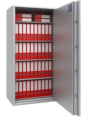 Dokumententresor WIEN SUPER 53 Dokumententresor WIEN SUPER 53 - Bild 2 Dokumententresor WIEN SUPER 53 - Bild 3 Dokumententresor WIEN SUPER 53 - Bild 4 Zur Abbildung kommt Dokumententresor WIEN SUPER 53 Auf dem Foto können teilweise Sonderausstattungen gegen Mehrpreis mit abgebildet sein. Dokumententresor WIEN SUPER 53 Sicherheitsstufen: Klasse 2 nach EN 1143-1 Grad 2 Brandschutzklassen: Feuerschutz / Brandschutz S 60 P nach EN 1047-1, 1 h Feuerschutz für Dokumente Außenmaße (Höhe x Breite x Tiefe in mm): 1.739 x 892 x 571 (613 mm mit Griff) Innenmaße (Höhe x Breite x Tiefe in mm): 1.600 x 756 x 393 Platz für DIN A4 Ordner: 40 Anzahl Fachböden inkl.: 4 Rauminhalt (in Liter): 475,5 l Gewicht: 707,0 kg Grundpreis:3.604,89 € inkl. MwSt. Farbe RAL 7035, lichtgrau Elektronikschloss Combi B 90 mit Notschlüssel von Dorma-Kaba Elektronikschloss Combi B 90, mit mechanischer Revision, mit einem Master- und 90 Benutzercodes, durch PC-Software und Kabel (Sonderzubehör) via Laptop auslesbar, mit Notschlüssel und Aluminiumbeschlag, 70 mm vorstehend, statt des serienmäßigen Doppelbartschlosses. Elektronikschloss Modell Stellar Basic, 12 mm vorstehend, Elektronikschloss Modell Stellar Basic, ohne Revision, mit 1 Mastercode, umstellbar, 12 mm vorstehend, statt des serienmäßigen Doppelbartschlosses, Stromversorgung durch 9-V-Blockbatterie. Mechanisches Zahlenkombinationsschloss La Gard Mechanisches Zahlenkombinationsschloss La Gard 3390, 12 mm vorstehend, statt des serienmäßigen Doppelbartsicherheitsschlosses. Elektronikschloss Modell Stellar Business, 12 mm vorstehend, Elektronikschloss Modell Stellar Business, mit 1 Master- und 9 Benutzercodes, ohne Revision, mit Ereignisspeicher für bis zu 32 Ereignisse, durch LED's auslesbar, 12 mm vorstehend, statt des serienmäßigen Doppelbartschlosses, Stromversorgung durch 9 V Blockbatterie. Aufpreis für mechanische Revision über Doppelbartschloss mit 2 Schlüsseln, Aufpreis für mechanische Revision über Doppelbartschloss mit 2 Schlüsseln für die folgenden Elektronikschlösser: Stellar Business und Stellar Basic. Automatisches Verschließen, des Elektronikschlosses Stellar Business bei Verriegelung der Tresortür. Nicht möglich bei Stellar Basic. Beschlag CS 1780 - perfekte Bedienung für Ihr Zahlenkombinationsschloss Beschlag CS 1780, 30 mm vorstehend, perfekte Bedienung für Ihr Zahlenkombinationsschloss. Elektronikschloss Primor 3010 Lev 15 Elektronisches Zahlenkombinationsschloss mit 1 Master- und 9 Benutzercodes, mit verdeckter Notöffnungsmöglichkeit durch Doppelbartschloss mit 2 Schlüsseln, mit Tastatur FS, 49 mm vorstehend, statt des serienmäßigen Doppelbartschlosses, Hergestellt in Deutschland. Elektronikschloss Primor 3010 Lev 5 Elektronisches Zahlenkombinationsschloss mit 1 Master- und 1 Benutzercode, mit verdeckter Notöffnungsmöglichkeit durch Doppelbartschloss mit 2 Schlüsseln, mit Tastatur FS, 49 mm vorstehend, statt des serienmäßigen Doppelbartschlosses, Hergestellt in Deutschland. Schlossvarianten - Auswählen / Zurücksetzen -Elektronikschloss Combi B 90 mit Notschlüssel von Dorma-Kaba zum Preis von 383,28 € Elektronikschloss Modell Stellar Basic, 12 mm vorstehend, zum Preis von 135,18 € Elektronikschloss Modell Stellar Business, 12 mm vorstehend, zum Preis von 157,81 € Elektronikschloss Primor 3010 Lev 15 zum Preis von 387,68 € Elektronikschloss Primor 3010 Lev 5 zum Preis von 357,94 € Mechanisches Zahlenkombinationsschloss La Gard zum Preis von 142,00 € 12345678910 Hängegriff VESTA für Combi B 90 zum Preis von 47,01 € Aufpreis für mechanische Revision über Doppelbartschloss mit 2 Schlüsseln, zum Preis von 50,49 € Automatisches Verschließen, zum Preis von 115,20 € Beschlag CS 1780 - perfekte Bedienung für Ihr Zahlenkombinationsschloss zum Preis von 46,89 € Aufpreis für mechanische Revision über Doppelbartschloss mit 2 Schlüsseln, zum Preis von 50,49 € Automatisches Verschließen, zum Preis von 115,20 € Fachboden (Tablar), klein Fachboden (Tablar), höhenverstellbar, auf voll ausziehbaren Teleskopschienen, für 2-türige Tresore mit Mitteltrennwand und 1-türige Tresore. Fachboden für Hängeregistratur Fachboden vorbereitet für eine Hängeregistratur, links und rechts einzuhängen, für 2-türige Tresore mit Mitteltrennwand und für eintürige Tresore. Schublade auf Teleskopschienen, voll ausziehbar Schublade, auf Teleskopschienen, voll ausziehbar, individuell einzurichten, Höhe: Front 100 mm, Seiten- u. Rückwand 80 mm, für 1-türige Tresore und 2-türige Tresore mit Mitteltrennwand. Hängeregistratur zwischen 701 und 900 mm Breite Hängeregistratur, auf Teleskopschienen, für DIN A 4 Hängemappen, für Tresore zwischen 701 und 900 mm Innenbreite. Inneneinrichtung - Auswählen / Zurücksetzen -Fachboden (Tablar), klein zum Preis von 218,73 € Fachboden für Hängeregistratur zum Preis von 61,68 € Hängeregistratur zwischen 701 und 900 mm Breite zum Preis von 237,75 € Schublade auf Teleskopschienen, voll ausziehbar zum Preis von 218,03 € 12345678910 Fachboden (Tablar), klein Fachboden (Tablar), höhenverstellbar, auf voll ausziehbaren Teleskopschienen, für 2-türige Tresore mit Mitteltrennwand und 1-türige Tresore. Fachboden für Hängeregistratur Fachboden vorbereitet für eine Hängeregistratur, links und rechts einzuhängen, für 2-türige Tresore mit Mitteltrennwand und für eintürige Tresore. Schublade auf Teleskopschienen, voll ausziehbar Schublade, auf Teleskopschienen, voll ausziehbar, individuell einzurichten, Höhe: Front 100 mm, Seiten- u. Rückwand 80 mm, für 1-türige Tresore und 2-türige Tresore mit Mitteltrennwand. Hängeregistratur zwischen 701 und 900 mm Breite Hängeregistratur, auf Teleskopschienen, für DIN A 4 Hängemappen, für Tresore zwischen 701 und 900 mm Innenbreite. Weitere Inneneinrichtung - Auswählen / Zurücksetzen -Fachboden (Tablar), klein zum Preis von 218,73 € Fachboden für Hängeregistratur zum Preis von 61,68 € Hänger