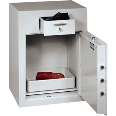Deposittresor GT-EW Deposittresor GT-EW - Bild 2 Zur Abbildung kommt Einwurftresor GT-EW Auf dem Foto können teilweise Sonderausstattungen gegen Mehrpreis mit abgebildet sein. Einwurftresor GT-EW Sicherheitsstufen: B nach VDMA 24992, Stand Mai 1995 Brandschutzklassen: Feuerschutz / Brandschutz nach DIN 4102 Außenmaße (Höhe x Breite x Tiefe in mm): 800 x 600 x 500 (565 mm mit Griff) Innenmaße (Höhe x Breite x Tiefe in mm): 560 x 460 x 360 Platz für DIN A4 Ordner: 5 Anzahl Fachböden inkl.: 1 Rauminhalt (in Liter): 92,5 l Gewicht: 300,0 kg Grundpreis:2.169,81 € inkl. MwSt. Farbe RAL 7035, lichtgrau Mechanisches Zahlenkombinationsschloss 12 mm vorstehend Mechanisches Zahlenkombinationsschloss, 12 mm vorstehend, statt des serienmäßigen Doppelbartsicherheitsschlosses. Versenkter Einbau bei Baureihen MN/MNO, MV/MVO, VN/VNO, VC/VCO, MST 0 und MST 1. Zusätzliches mechanisches Zahlenkombinationsschloss (12 mm) Mechanisches Zahlenkombinationsschloss, 12 mm vorstehend, zusätzlich zum serienmäßigen Doppelbartsicherheitsschloss. Versenkter Einbau bei Baureihen MN/MNO, MV/MVO, VN/VNO und VC/VCO. Elektronikschloss LaGard Basic, vorstehend Elektronikschloss, LaGard Basic, Tastatur 30 mm vorstehend, statt des serienmäßigen Doppelbartschlosses. Versenkter Einbau (0 mm vorstehend) bei Baureihen MN/MNO, MV/MVO, VN/VNO, VC/VCO, MST 0 und MST 1. Elektronisches Zahlenkombinationsschloss Combi B 90 mit Notschlüssel Elektronikschloss Combi B 90, mit einem Master-, einem Kurier- und 90 Benutzercodes, mit Notschlüssel und Protokollierung der letzten 200 Vorgänge (PC-Auslesesoftware optional erhältlich), 70 mm vorstehend, anstelle des serienmäßigen Doppelbartschlosses. Schlossvarianten - Auswählen / Zurücksetzen -Doppelverschluss (2 Doppelbartsicherheitsschlösser). zum Preis von 118,62 € Elektronikschloss LaGard Basic, vorstehend zum Preis von 293,32 € Elektronisches Zahlenkombinationsschloss Combi B 90 mit Notschlüssel zum Preis von 463,14 € Mechanisches Zahlenkombinationsschloss 12 mm vorstehend zum Preis von 213,63 € Zusätzliches mechanisches Zahlenkombinationsschloss (12 mm) zum Preis von 289,93 € 12345678910 Auffangbehälter für Deposittresor, Auffangbehälter für Einwurftresor Modellreihe GT-EW. Einwurfschublade, 200 mm hoch, Einwurfschublade, 200 mm hoch, als Option. Einwurfschlitz mit Rückholsicherung, Einwurfschlitz mit Rückholsicherung, Maße und Position nach Angabe, doppelwandig, ohne Plakette. Trommeleinwurf, als Option. Depositzubehör - Auswählen / Zurücksetzen -Auffangbehälter für Deposittresor, zum Preis von 137,96 € Einwurfschlitz mit Rückholsicherung, zum Preis von 293,32 € Einwurfschublade, 200 mm hoch, zum Preis von 929,33 € Trommeleinwurf, zum Preis von 1.545,05 € 12345678910 Sonderlackierung nach RAL-Farbton. Sonderlackierung nach RAL-Farbton. Sonstiges - Auswählen / Zurücksetzen -Sonderlackierung nach RAL-Farbton. zum Preis von 200,92 € 12345678910 Buchse für Verankerung, nach Positions-Angabe, 13 mm Durchmesser. Spezialdübel, zur Befestigung im Betonboden, Spezialdübel zur Befestigung im Betonboden, B 25, 12 mm Durchmesser Verankerung / Montage - Auswählen / Zurücksetzen -Buchse für Verankerung, zum Preis von 25,06 € Spezialdübel, zur Befestigung im Betonboden, zum Preis von 12,07 € 12345678910 Paket Die Lieferung erfolgt per Paketdienst. Stückgut Anlieferung / Abholung Die Lieferung erfolgt frei Bordsteinkante in der gesamten Bundesrepublik Deutschland, ausgenommen Inseln. Im Normalfall befördert der Spediteur die Ware hinter die erste verschlossene Tür auf Straßenebene, ohne Stufen; hierauf besteht jedoch leider kein Rechtsanspruch. Stückgut Anlieferung / Abholung Die Lieferung erfolgt frei Bordsteinkante in der gesamten Bundesrepublik Deutschland, ausgenommen Inseln. Im Normalfall befördert der Spediteur die Ware hinter die erste verschlossene Tür auf Straßenebene, ohne Stufen; hierauf besteht jedoch leider kein Rechtsanspruch. Stückgut Anlieferung / Abholung Die Lieferung erfolgt frei Bordsteinkante in der gesamten Bundesrepublik Deutschland, ausgenommen Inseln. Im Normalfall befördert der Spediteur die Ware hinter die erste verschlossene Tür auf Straßenebene, ohne Stufen; hierauf besteht jedoch leider kein Rechtsanspruch. Fachspedition mit 60 Minuten Aufstellzeit Die Lieferung erfolgt frei Verwendungsstelle inklusive einer Haustransportzeit von 60 Min. in der gesamten Bundesrepublik Deutschland, ausgenommen Inseln. Nicht enthalten sind etwaige Kran- oder Sondertransporte für nicht frei zugängliche Aufstellungsorte. Fachspedition mit 60 Minuten Aufstellzeit Die Lieferung erfolgt frei Verwendungsstelle inklusive einer Haustransportzeit von 60 Min. in der gesamten Bundesrepublik Deutschland, ausgenommen Inseln. Nicht enthalten sind etwaige Kran- oder Sondertransporte für nicht frei zugängliche Aufstellungsorte. Fachspedition mit 30 Minuten Aufstellzeit Die Lieferung erfolgt frei Verwendungsstelle inklusive einer Haustransportzeit von 30 Min. in der gesamten Bundesrepublik Deutschland, ausgenommen Inseln. Nicht enthalten sind etwaige Kran- oder Sondertransporte für nicht frei zugängliche Aufstellungsorte. Transportart Stückgut Anlieferung / Abholung zum Preis von 228,48 € inkl. MwStFachspedition zum Preis von 314,16 € inkl. MwSt Gesamtpreis: Anzahl 12345678910 0,00 € Zum Warenkorb hinzufügen Technische Daten Beschreibung Downloads Zubehör Alle Tresore der Baureihe Einwurftresor GT-EW Deposittresor der Modellreihe GT-EW. Hochwertige Spezialkonstruktion mit hitzebeständiger Isolierung. Mit verschließbarer Einwurfschublade zum Abwurf von Geldbomben. Auch bei geöffneter Schublade sicher vor Rückholung. Optionale Position der Schublade (vorn, seitlich, hinten). Auch ein Einwurf durch eine Wand ist möglich, bis zu einer Mauerstärke von 150 mm. Tresorart: Einwurftresor Tresore verschiedener Sicherheitsstufen mit Einwurfschublade oder Einwurfschacht sowie Rückholsicherung, die vor allem Anwendun