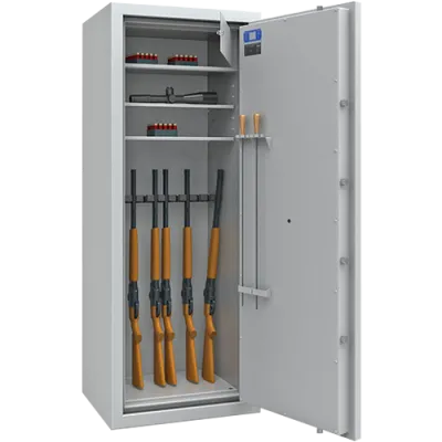 Waffenschrank DRESDEN-RADEBEUL 04 Waffenschrank DRESDEN-RADEBEUL 04 - Bild 2 Zur Abbildung kommt Waffentresor DRESDEN-RADEBEUL 04 Auf dem Foto können teilweise Sonderausstattungen gegen Mehrpreis mit abgebildet sein. Waffentresor DRESDEN-RADEBEUL 04 Sicherheitsstufen: Klasse 1 nach EN 1143-1 Grad 1 Brandschutzklassen: Feuerschutz / Brandschutz LFS 30 P nach prEN 15659, 1/2 h Feuerschutz für Dokumente Außenmaße (Höhe x Breite x Tiefe in mm): 1.806 x 700 x 550 (592 mm mit Griff) Innenmaße (Höhe x Breite x Tiefe in mm): 1.485 x 576 x 344 Anzahl Fachböden inkl.: 2 Anzahl Waffenhalter inkl.: 10 Rauminhalt (in Liter): 294,2 l Gewicht: 381,0 kg Grundpreis:1.746,34 € inkl. MwSt. Farbe RAL 6020, chromoxidgrünRAL 7024, graphitgrauRAL 7035, lichtgrau Elektronikschloss Combi B 90 mit Notschlüssel von Dorma-Kaba Elektronikschloss Combi B 90, mit mechanischer Revision, mit einem Master- und 90 Benutzercodes, durch PC-Software und Kabel (Sonderzubehör) via Laptop auslesbar, mit Notschlüssel und Aluminiumbeschlag, 70 mm vorstehend, statt des serienmäßigen Doppelbartschlosses. Elektronikschloss Modell Stellar Basic, 12 mm vorstehend, Elektronikschloss Modell Stellar Basic, ohne Revision, mit 1 Mastercode, umstellbar, 12 mm vorstehend, statt des serienmäßigen Doppelbartschlosses, Stromversorgung durch 9-V-Blockbatterie. Mechanisches Zahlenkombinationsschloss La Gard Mechanisches Zahlenkombinationsschloss La Gard 3390, 12 mm vorstehend, statt des serienmäßigen Doppelbartsicherheitsschlosses. Elektronikschloss Modell Stellar Business, 12 mm vorstehend, Elektronikschloss Modell Stellar Business, mit 1 Master- und 9 Benutzercodes, ohne Revision, mit Ereignisspeicher für bis zu 32 Ereignisse, durch LED's auslesbar, 12 mm vorstehend, statt des serienmäßigen Doppelbartschlosses, Stromversorgung durch 9 V Blockbatterie. Aufpreis für mechanische Revision über Doppelbartschloss mit 2 Schlüsseln, Aufpreis für mechanische Revision über Doppelbartschloss mit 2 Schlüsseln für die folgenden Elektronikschlösser: Stellar Business und Stellar Basic. Beschlag CS 1780 - perfekte Bedienung für Ihr Zahlenkombinationsschloss Beschlag CS 1780, 30 mm vorstehend, perfekte Bedienung für Ihr Zahlenkombinationsschloss. Elektronikschloss Primor 3010 Lev 15 Elektronisches Zahlenkombinationsschloss mit 1 Master- und 9 Benutzercodes, mit verdeckter Notöffnungsmöglichkeit durch Doppelbartschloss mit 2 Schlüsseln, mit Tastatur FS, 49 mm vorstehend, statt des serienmäßigen Doppelbartschlosses, Hergestellt in Deutschland. Elektronikschloss Primor 3010 Lev 5 Elektronisches Zahlenkombinationsschloss mit 1 Master- und 1 Benutzercode, mit verdeckter Notöffnungsmöglichkeit durch Doppelbartschloss mit 2 Schlüsseln, mit Tastatur FS, 49 mm vorstehend, statt des serienmäßigen Doppelbartschlosses, Hergestellt in Deutschland. Schlossvarianten - Auswählen / Zurücksetzen -Elektronikschloss Combi B 90 mit Notschlüssel von Dorma-Kaba zum Preis von 383,28 € Elektronikschloss Modell Stellar Basic, 12 mm vorstehend, zum Preis von 135,18 € Elektronikschloss Modell Stellar Business, 12 mm vorstehend, zum Preis von 157,81 € Elektronikschloss Primor 3010 Lev 15 zum Preis von 387,68 € Elektronikschloss Primor 3010 Lev 5 zum Preis von 357,94 € Mechanisches Zahlenkombinationsschloss La Gard zum Preis von 142,00 € 12345678910 Hängegriff VESTA für Combi B 90 zum Preis von 47,01 € Aufpreis für mechanische Revision über Doppelbartschloss mit 2 Schlüsseln, zum Preis von 50,49 € Beschlag CS 1780 - perfekte Bedienung für Ihr Zahlenkombinationsschloss zum Preis von 46,89 € Aufpreis für mechanische Revision über Doppelbartschloss mit 2 Schlüsseln, zum Preis von 50,49 € Doppelbartschloss (inkl. 2 Schlüssel) für Innentresor Doppelbartschloss (inkl. 2 Schlüssel) für Innentresor anstelle des serienmäßigen Zylinderschlosses. Innentresor - Auswählen / Zurücksetzen - 12345678910 Trennwand mit jeweils 3 höhenverstellbaren Fachböden, Trennwand, mit jeweils 3 verstellbaren Fachböden links und rechts, statt vollständigem Waffenteil (Zahl der gewünschten Waffenhalter bitte angeben). Die dadurch wegfallenden Waffenhalter werden mitgeliefert, so dass ein späteres Umrüsten auf Waffenhalter möglich ist. Spezial-Waffenhalter aus Vollgummi, Spezial-Waffenhalter aus Vollgummi, mit hohem Kautschukanteil, 65 mm breit (10 mm breiter als der serienmäßige Halter), statt des serienmäßigen Schaumstoff-Waffenhalters. Waffenhalter aus Schaumstoff, 1 Stück zusätzlich, geeignet für die linke und die rechte Seitenwand. Innentresor (zusätzlich) für Waffenschrank, geschraubt, über komplette Innenhöhe (bis Innentresor), wahlweise für Waffen- oder Ordnerteil, mit Doppelbartschloss und 2 Schlüsseln. Staufach, auf Türverkleidungsblech, Je 1 Staufach, höhenverstellbar, auf Türverkleidungsblech. Waffenschrankzubehör - Auswählen / Zurücksetzen -Innentresor (zusätzlich) für Waffenschrank, geschraubt, zum Preis von 123,20 € Spezial-Waffenhalter aus Vollgummi, zum Preis von 11,00 € Staufach, auf Türverkleidungsblech, zum Preis von 10,95 € Trennwand mit jeweils 3 höhenverstellbaren Fachböden, zum Preis von 176,68 € Waffenhalter aus Schaumstoff, 1 Stück zusätzlich, zum Preis von 10,95 € 12345678910 Trennwand mit jeweils 3 höhenverstellbaren Fachböden, Trennwand, mit jeweils 3 verstellbaren Fachböden links und rechts, statt vollständigem Waffenteil (Zahl der gewünschten Waffenhalter bitte angeben). Die dadurch wegfallenden Waffenhalter werden mitgeliefert, so dass ein späteres Umrüsten auf Waffenhalter möglich ist. Spezial-Waffenhalter aus Vollgummi, Spezial-Waffenhalter aus Vollgummi, mit hohem Kautschukanteil, 65 mm breit (10 mm breiter als der serienmäßige Halter), statt des serienmäßigen Schaumstoff-Waffenhalters. Waffenhalter aus Schaumstoff, 1 Stück zusätzlich, geeignet für die linke und die rechte Seitenwand. Innentresor (zusätzlich) für Waffenschrank, geschraubt, über k