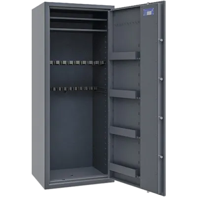Waffenschrank LUZERN WF MAX 34, Lackierung RAL 7035 lichtgrau Waffenschrank LUZERN WF MAX 34, Lackierung RAL 7024 graphitgrau Waffenschrank LUZERN WF MAX 34, RAL 7035 lichtgrau Waffenschrank LUZERN WF MAX 34 mit Doppelbatschloss, RAL 7024 graphitgrau Waffenschrank LUZERN WF MAX 34 mit Doppelbatschloss, RAL 7035 lichtgrau Zur Abbildung kommt Waffentresor LUZERN WF MAX 34 Auf dem Foto können teilweise Sonderausstattungen gegen Mehrpreis mit abgebildet sein. Waffentresor LUZERN WF MAX 34 Sicherheitsstufen: Klasse N/0 nach EN 1143-1 Grad 0 Brandschutzklassen: Kein zertifizierter Brandschutz / Feuerschutz Außenmaße (Höhe x Breite x Tiefe in mm): 1.600 x 655 x 500 (542 mm mit Griff) Innenmaße (Höhe x Breite x Tiefe in mm): 1.550 x 605 x 390 Anzahl Fachböden inkl.: 2 Anzahl Schlüsselhaken inkl.: 11 Anzahl Staufächer inkl.: 4 Anzahl Waffenhalter inkl.: 20 Rauminhalt (in Liter): 365,7 l Gewicht: 232,0 kg Grundpreis:1.100,57 € inkl. MwSt. Farbe RAL 7024, graphitgrauRAL 7035, lichtgrau Elektronikschloss Combi B 90 mit Notschlüssel von Dorma-Kaba Elektronikschloss Combi B 90, mit mechanischer Revision, mit einem Master- und 90 Benutzercodes, durch PC-Software und Kabel (Sonderzubehör) via Laptop auslesbar, mit Notschlüssel und Aluminiumbeschlag, 70 mm vorstehend, statt des serienmäßigen Doppelbartschlosses. Elektronikschloss Modell Stellar Basic, 12 mm vorstehend, Elektronikschloss Modell Stellar Basic, ohne Revision, mit 1 Mastercode, umstellbar, 12 mm vorstehend, statt des serienmäßigen Doppelbartschlosses, Stromversorgung durch 9-V-Blockbatterie. Elektronikschloss Modell Stellar Business, 12 mm vorstehend, Elektronikschloss Modell Stellar Business, mit 1 Master- und 9 Benutzercodes, ohne Revision, mit Ereignisspeicher für bis zu 32 Ereignisse, durch LED's auslesbar, 12 mm vorstehend, statt des serienmäßigen Doppelbartschlosses, Stromversorgung durch 9 V Blockbatterie. Elektronikschloss Primor 3000 Lev 5 Elektronisches Zahlenkombinationsschloss mit 1 Master- und 1 Benutzercode, mit Tastatur FS, 49 mm vorstehend, statt des serienmäßigen Doppelbartschlosses. Hergestellt in Deutschland. Elektronikschloss Primor 3000 Lev 15 Elektronisches Zahlenkombinationsschloss mit 1 Master- und 9 Benutzercodes, mit Tastatur FS, 49 mm vorstehend, statt des serienmäßigen Doppelbartschlosses. Hergestellt in Deutschland. Mechanisches Zahlenkombinationsschloss La Gard Mechanisches Zahlenkombinationsschloss La Gard 3390, 12 mm vorstehend, statt des serienmäßigen Doppelbartsicherheitsschlosses. Beschlag CS 1780 - perfekte Bedienung für Ihr Zahlenkombinationsschloss Beschlag CS 1780, 30 mm vorstehend, perfekte Bedienung für Ihr Zahlenkombinationsschloss. Elektronikschloss SECU SELO BR V.2 FP Die Öffnung per Code oder in Kombination mit Fingerprint ist mit unserer Premium-Elektronik SECU SELO — BR V.2 FP möglich. Individuelle Öffnungsrechte und Manipulationsschutz durch gepairte Schlosskomponenten und AES-Verschlüsselung sind weitere Pluspunkte für Ihre Sicherheit.Zusätzlich ist dieses Schloss vollredundant ausgeführt. Diese bedeutet, dass die funktionsübergreifenden elektrischen Komponenten zusätzlich als Reservesystem vorhanden sind. Im sehr unwahrscheinlichen technischen Fehlerfall des Hauptsystems ist es möglich, mit dem Zweitsystem der vollredundanten Ausführung das Schloss zu bedienen und den Tresor ohne Beschädigung durch einen Servicedienst zu öffnen.Die Fingerprint-Elektronik für unsere Schlösser vereint modernes Design mit innovativer Technik und hohem Bedienkomfort dank intuitiver Menüführung. Das beleuchtete Touch-Bedienfeld aktivieren Sie ganz einfach per Berührung. Ist eine neue Software-Version verfügbar, können Sie diese ganz bequem per microSD-Karte übertragen. So ist Ihr Modell immer up to date!Neue Elektronik mit beleuchtetem Touch-Bedienfeld, Grafik-Display und Fingerprint-SensorECB·S‑zertifiziertes Tresorschloss mit Fingerprint-Modul EN 1300 Klasse BProgrammierbares elektronisches Zahlenschloss10.000.000 EinstellmöglichkeitenEs können ein Admincode und bis zu 49 Benutzercodes sowie bis zu 20 Fingerprintsprogrammiert werdenDer Fingerprint-Sensor verfügt über eine„Fake Finger Detection“– diese Lebendfingererkennung schließt bei der Identifikation gefälschte Finger ausSicherheits-Plus: Öffnungsverzögerung, Sperrzeiten (nach 3x falscher Codeeingabe 5 Minuten, danach jeweils 10 Minuten), Firmware-Updates per microSD-KarteSchließhistorie am Grafik-Display auslesbar und auf einer microSD-Karte speicherbar; Historienanzahl: 2.000Eingabeeinheit und Schlossmodul werden durch das Pairing und durch die verschlüsselte Datenkommunikation gegen Manipulation optimal geschütztOptional: Vorbereitung Alarmbox und Alarmbox: stiller Alarm und Fernsperrung Schlossvarianten - Auswählen / Zurücksetzen -Elektronikschloss Combi B 90 mit Notschlüssel von Dorma-Kaba zum Preis von 383,28 € Elektronikschloss Modell Stellar Basic, 12 mm vorstehend, zum Preis von 135,18 € Elektronikschloss Modell Stellar Business, 12 mm vorstehend, zum Preis von 157,81 € Elektronikschloss Primor 3000 Lev 15 zum Preis von 342,05 € Elektronikschloss Primor 3000 Lev 5 zum Preis von 326,19 € Elektronikschloss SECU SELO BR V.2 FP zum Preis von 728,80 € Mechanisches Zahlenkombinationsschloss La Gard zum Preis von 142,00 € 12345678910 Hängegriff VESTA für Combi B 90 zum Preis von 47,01 € Beschlag CS 1780 - perfekte Bedienung für Ihr Zahlenkombinationsschloss zum Preis von 46,89 € 1 Bohrung für Wertschutzschränke nach EN 1143-1, Zusätzliche Bohrung im Korpus, im Boden, in den Seitenwänden oder in der Kopfplatte für Tresore, die nach EN 1143-1 Grad N/0, 1, 2, 3, 4, 5 geprüft worden sind. Bohrung - Auswählen / Zurücksetzen -1 Bohrung für Wertschutzschränke nach EN 1143-1, zum Preis von 55,00 € 12345678910 Position der Bohrungen angeben Verankerung vor Ort. Verankerung inkl. 2 Bohrungen (Bohrungen im Tresor sowie Verankerungsmaterial müssen vorhanden sei
