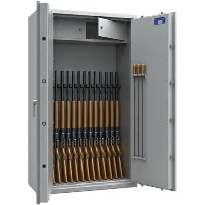 Waffenschrank ST GALLEN WF 04 Waffenschrank ST GALLEN WF 04 Zur Abbildung kommt Waffentresor St Gallen WF 04 Auf dem Foto können teilweise Sonderausstattungen gegen Mehrpreis mit abgebildet sein. Waffentresor St Gallen WF 04 Sicherheitsstufen: Klasse 1 nach EN 1143-1 Grad 1 Brandschutzklassen: Kein zertifizierter Brandschutz / Feuerschutz Außenmaße (Höhe x Breite x Tiefe in mm): 1.550 x 915 x 430 (472 mm mit Griff) Innenmaße (Höhe x Breite x Tiefe in mm): 1.300 x 865 x 320 Anzahl Waffenhalter inkl.: 15 Rauminhalt (in Liter): 359,8 l Gewicht: 286,0 kg Grundpreis:1.619,44 € inkl. MwSt. Farbe RAL 6020, chromoxidgrünRAL 7024, graphitgrauRAL 7035, lichtgrauRAL 9006, weißaluminium Aufpreis für mechanische Revision über mechanisches Zahlenkombinationsschloss, Aufpreis für mechanische Revision über mechanisches Zahlenkombinationsschloss für die folgenden Elektronikschlösser Stellar Business und Stellar Basic. Elektronikschloss Modell Stellar Basic, 12 mm vorstehend, Elektronikschloss Modell Stellar Basic, ohne Revision, mit 1 Mastercode, umstellbar, 12 mm vorstehend, statt des serienmäßigen Doppelbartschlosses, Stromversorgung durch 9-V-Blockbatterie. Elektronikschloss Modell Stellar Business, 12 mm vorstehend, Elektronikschloss Modell Stellar Business, mit 1 Master- und 9 Benutzercodes, ohne Revision, mit Ereignisspeicher für bis zu 32 Ereignisse, durch LED's auslesbar, 12 mm vorstehend, statt des serienmäßigen Doppelbartschlosses, Stromversorgung durch 9 V Blockbatterie. Elektronikschloss TULOX 100, Flash 5, mit Notschlüssel, Elektronikschloss Tulox 100, Flash 5, mit 1 Master- und 8 Benutzercodes, mit Notöffnungsschloss und 1 Notschlüssel, Notschlüsselloch verdeckt, 35 mm vorstehend, Batteriebetrieb mit 4 Alkaline Mignon-Zellen (auch bezeichnet als Typ AA oder LR6), statt des serienmäßigen Doppelbartschlosses. Hergestellt in Deutschland. Mechanisches Zahlenkombinationsschloss La Gard Mechanisches Zahlenkombinationsschloss La Gard 3390, 12 mm vorstehend, statt des serienmäßigen Doppelbartsicherheitsschlosses. Beschlag CS 1780 - perfekte Bedienung für Ihr Zahlenkombinationsschloss Beschlag CS 1780, 30 mm vorstehend, perfekte Bedienung für Ihr Zahlenkombinationsschloss. Aufpreis für mechanische Revision über Doppelbartschloss mit 2 Schlüsseln, Aufpreis für mechanische Revision über Doppelbartschloss mit 2 Schlüsseln für die folgenden Elektronikschlösser: Stellar Business und Stellar Basic. Elektronikschloss Combi B 90 mit Notschlüssel von Dorma-Kaba Elektronikschloss Combi B 90, mit mechanischer Revision, mit einem Master- und 90 Benutzercodes, durch PC-Software und Kabel (Sonderzubehör) via Laptop auslesbar, mit Notschlüssel und Aluminiumbeschlag, 70 mm vorstehend, statt des serienmäßigen Doppelbartschlosses. Elektronikschloss Primor 3010 Lev 15 Elektronisches Zahlenkombinationsschloss mit 1 Master- und 9 Benutzercodes, mit verdeckter Notöffnungsmöglichkeit durch Doppelbartschloss mit 2 Schlüsseln, mit Tastatur FS, 49 mm vorstehend, statt des serienmäßigen Doppelbartschlosses, Hergestellt in Deutschland. Elektronikschloss Primor 3010 Lev 5 Elektronisches Zahlenkombinationsschloss mit 1 Master- und 1 Benutzercode, mit verdeckter Notöffnungsmöglichkeit durch Doppelbartschloss mit 2 Schlüsseln, mit Tastatur FS, 49 mm vorstehend, statt des serienmäßigen Doppelbartschlosses, Hergestellt in Deutschland. Elektronikschloss Primor 3000 Lev 5 Elektronisches Zahlenkombinationsschloss mit 1 Master- und 1 Benutzercode, mit Tastatur FS, 49 mm vorstehend, statt des serienmäßigen Doppelbartschlosses. Hergestellt in Deutschland. Elektronikschloss Primor 3000 Lev 15 Elektronisches Zahlenkombinationsschloss mit 1 Master- und 9 Benutzercodes, mit Tastatur FS, 49 mm vorstehend, statt des serienmäßigen Doppelbartschlosses. Hergestellt in Deutschland. Schlossvarianten - Auswählen / Zurücksetzen -Elektronikschloss Combi B 90 mit Notschlüssel von Dorma-Kaba zum Preis von 383,28 € Elektronikschloss Modell Stellar Basic, 12 mm vorstehend, zum Preis von 135,18 € Elektronikschloss Modell Stellar Business, 12 mm vorstehend, zum Preis von 157,81 € Elektronikschloss Primor 3000 Lev 15 zum Preis von 342,05 € Elektronikschloss Primor 3000 Lev 5 zum Preis von 326,19 € Elektronikschloss Primor 3010 Lev 15 zum Preis von 387,68 € Elektronikschloss Primor 3010 Lev 5 zum Preis von 357,94 € Elektronikschloss TULOX 100, Flash 5, mit Notschlüssel, zum Preis von 319,72 € Mechanisches Zahlenkombinationsschloss La Gard zum Preis von 142,00 € 12345678910 Aufpreis für mechanische Revision über mechanisches Zahlenkombinationsschloss, zum Preis von 135,34 € Aufpreis für mechanische Revision über Doppelbartschloss mit 2 Schlüsseln, zum Preis von 50,49 € Aufpreis für mechanische Revision über mechanisches Zahlenkombinationsschloss, zum Preis von 135,34 € Aufpreis für mechanische Revision über Doppelbartschloss mit 2 Schlüsseln, zum Preis von 50,49 € Beschlag CS 1780 - perfekte Bedienung für Ihr Zahlenkombinationsschloss zum Preis von 46,89 € Hängegriff VESTA für Combi B 90 zum Preis von 47,01 € Staufach, auf Türverkleidungsblech, Je 1 Staufach, höhenverstellbar, auf Türverkleidungsblech. Trennwand mit 3 höhenverstellbaren Fachböden, Trennwand, mit 3 verstellbaren Fachböden, statt vollständigem Waffenteil (Zahl der gewünschten Waffenhalter bitte angeben). Die dadurch wegfallenden Waffenhalter werden mitgeliefert, so dass ein späteres Umrüsten auf Waffenhalter möglich ist. Spezial-Waffenhalter aus Vollgummi, Spezial-Waffenhalter aus Vollgummi, mit hohem Kautschukanteil, 65 mm breit (10 mm breiter als der serienmäßige Halter), statt des serienmäßigen Schaumstoff-Waffenhalters. Waffenschrankzubehör - Auswählen / Zurücksetzen -Spezial-Waffenhalter aus Vollgummi, zum Preis von 11,00 € Staufach, auf Türverkleidungsblech, zum Preis von 10,95 € Trennwand mit 3 höhenverstellbaren Fachböden, zum Preis von 124,20 € 12345678910 S